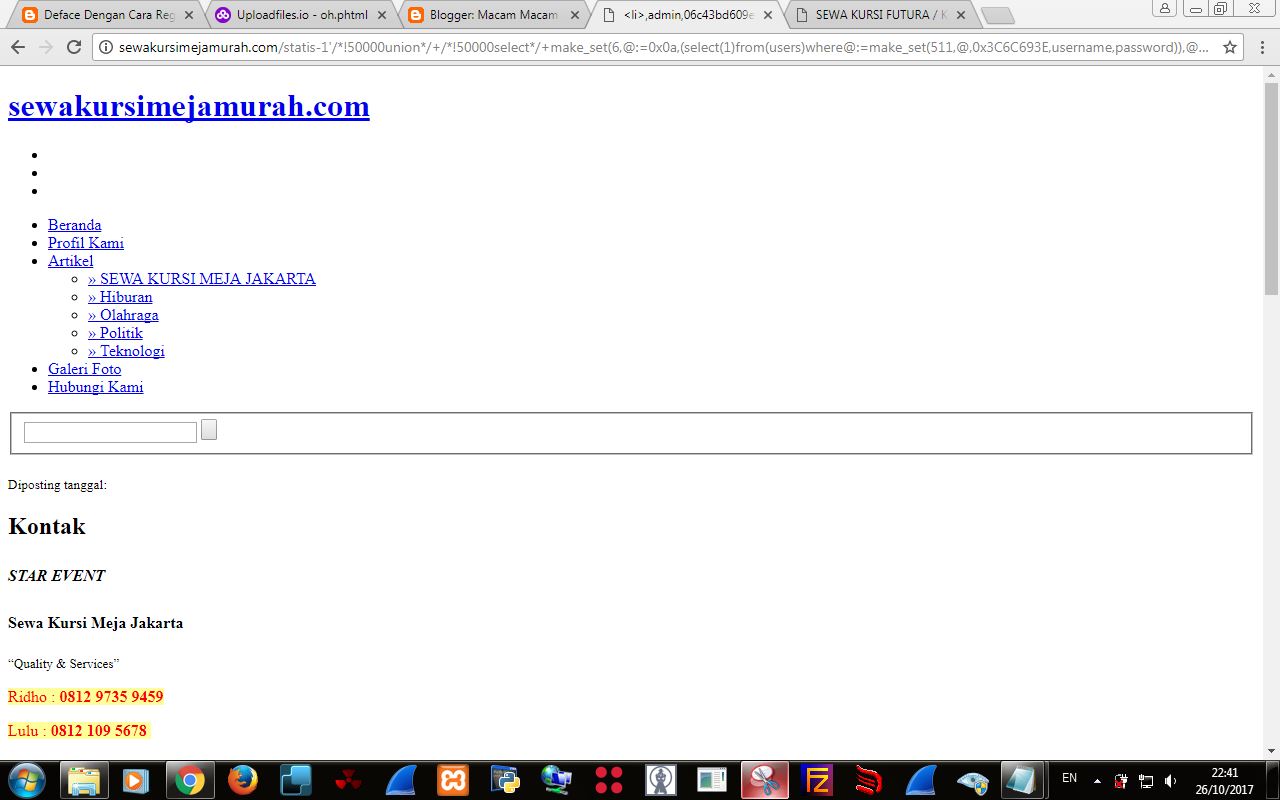 h3h3 udh itu aja ya :v, ok cukup sekian tutor dari ane, ane akan share share cara deface yg lainnya , see you next time guys :v